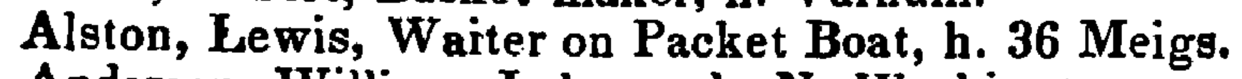 - Alston, Lewis, Waiter on Packet Boat, h. 36 Meigs.