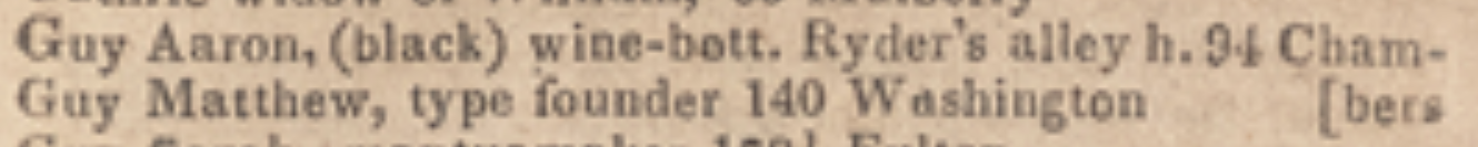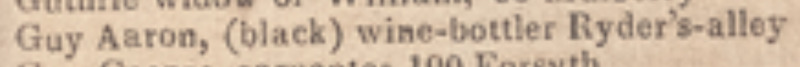 Guy Aaron, (black) wine-bott. Ryder's alley h. 94 Chambers