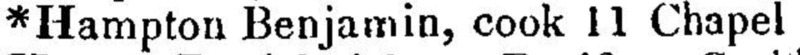- *Hampton Benjamin, cook 11 Chapel
