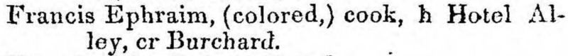 - Francis Ephraim, (colored,) cook, h Hotel Alley, cr Burchard.