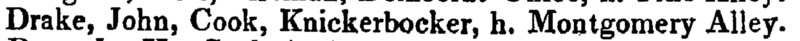 - Drake, John, Cook, Knickerbocker, h. Montgomery Alley.