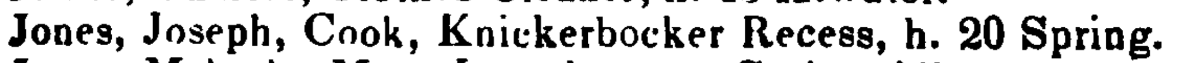 - Jones, Joseph, Cook, Knickerbocker Recess, h. 20 Spring.