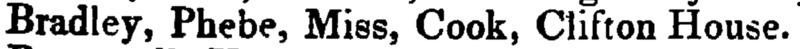 - Bradley, Phebe, Miss, Cook, Clifton House.