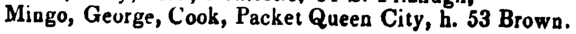 - Mingo, George, Cook, Packet Queen City, h. 53 Brown.