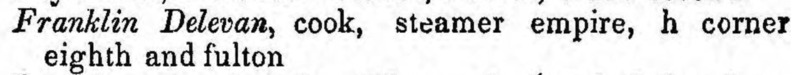 - Franklin Delevan, cook, steamer empire, h corner eighth and fulton
